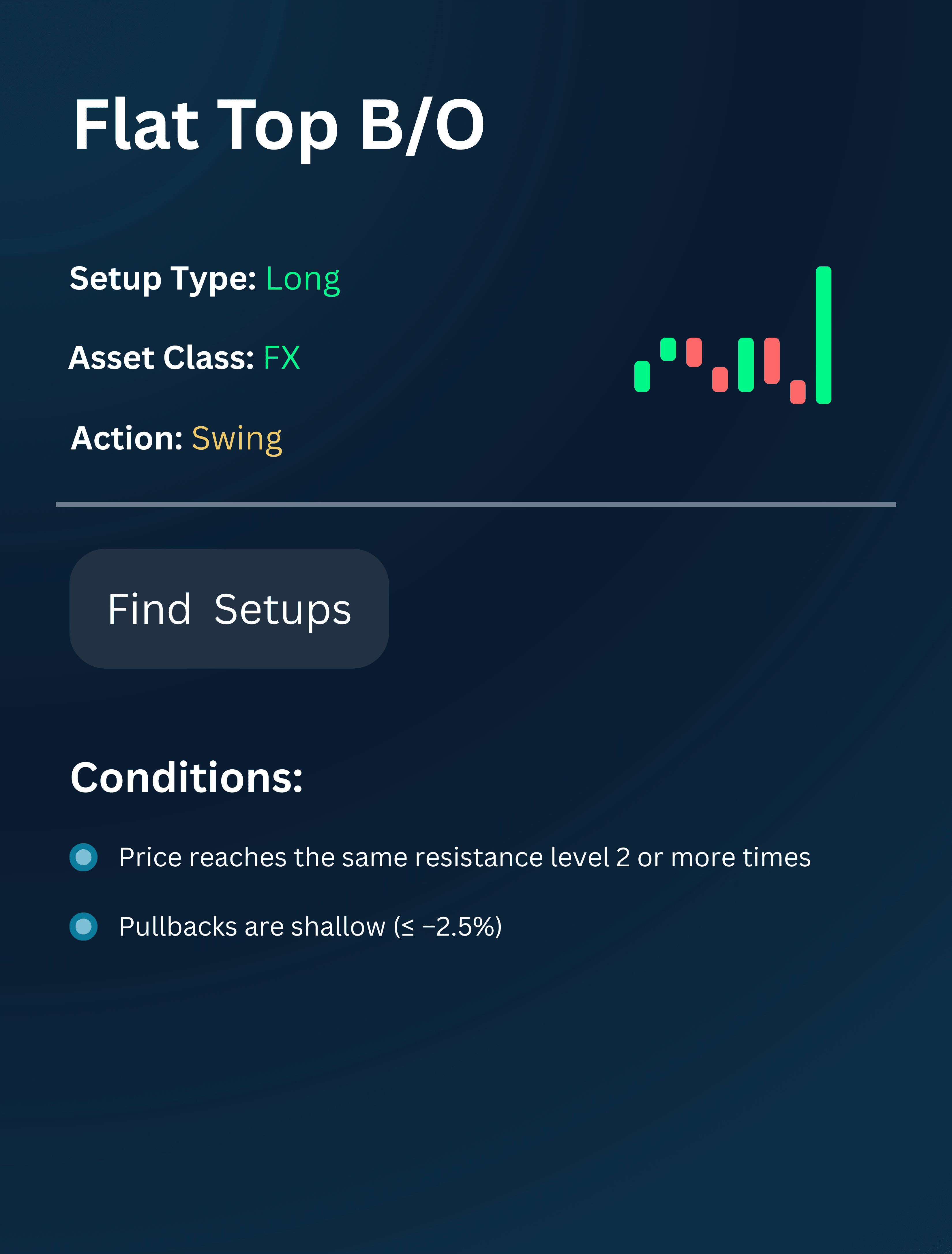 Setup Finder helps you search historical market data for specific trading setups, so you can study patterns instead of relying only on intuition.